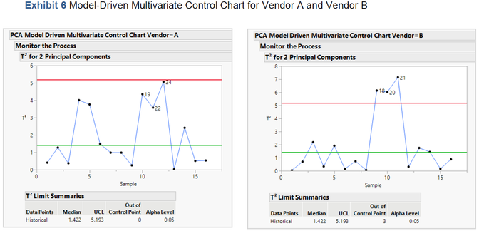 圖 6:供應商 A 和 B 的模型驅動多元控制圖