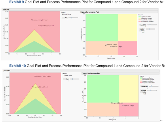 圖9: 供應商 A 的化合物 1 和化合物 2 Goal Plot和製程性能圖