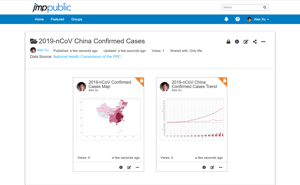 可以预见的是,伴随JMP产品系列的不断更新换代,依托JMP原本强大统计分析能力的信息分享必将使你的统计洞察发挥更大价值,而事实上也的确如此,越来越多的JMP用户正在与我们探索如何充分运用JMP Live为企业赋能,让分析成果广泛地在组织内得以即时分享并落地应用。如果你对本文中所提到的报表感兴趣,欢迎前往JMP Public查看更多:https://public.jmp.com/packages/2019-nCoV-China-Confirmed-Cases/js-p/mPnfRyw57ZzMsB1yNQ1wN
