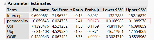 Using JMP, I generate 2500 bootstrap samples to calculate new confidence intervals of 0.019 and 0.119. The bootstrap limits are larger than the original limits of 0.010 and 0.108 – suggesting that the relationship between permeability and predicted responses are in fact stronger than previously estimated. With this new insight, I can adjust the coefficients of my model to reduce uncertainty and produce an estimate that’s more in line with actual expected results.