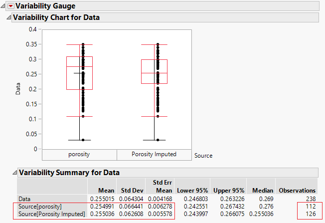 Real data sometimes will have missing values, and my example data set is no different. It contains some entries where data was not collected because there was an issue with a sensor. Unfortunately, since those values were omitted, they are now discarded from any analysis, and I lose out on any prospective insight that could have gained if my data set were complete. By using imputation in JMP, I can now estimate the values of those missing entries and increase the confidence of my projections. Imputation can be performed using many techniques; I opted for a method called Multivariate SVD Imputation to predict the values of the 14 missing entries. It should be noted that imputed data is not real data, but it offers a means to carry out analysis that otherwise could not be performed. By imputing my missing data, I increase the accuracy of predictor variable estimates and can now fully utilize all my collected data.