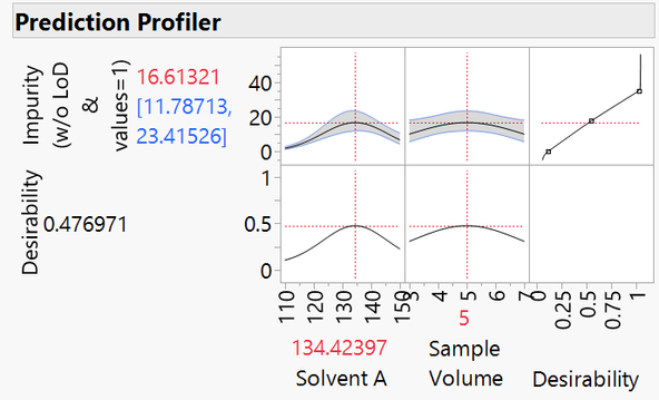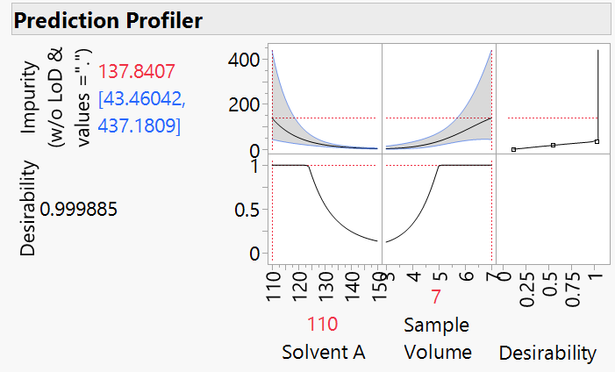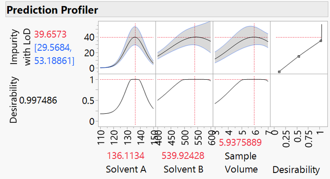 The comparison clearly illustrates how LOD controls mitigate error in prediction estimates for models. It is always a best practice to create confirmation runs in the space surrounding the amounts for the inputs identified as optimum.