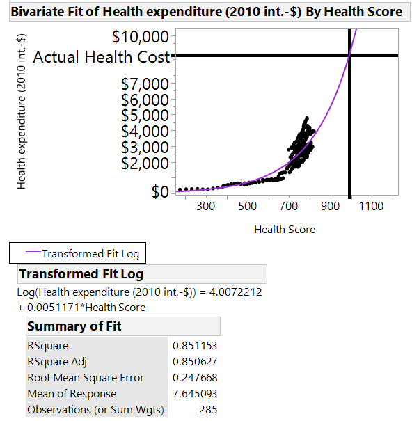 We could change the question and see what the US should be getting for the cost the country is currently paying for health care (~$8715 per person). We should expect a health score of 990.