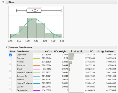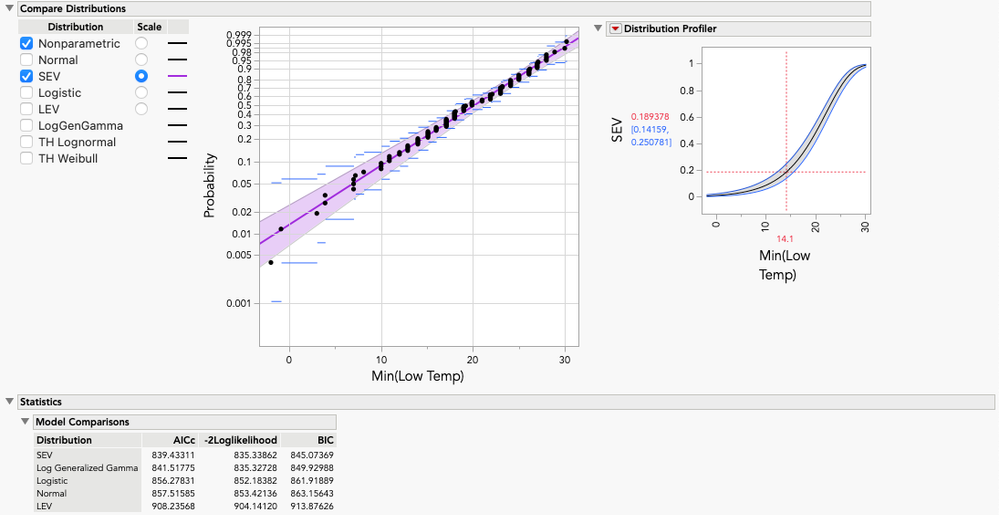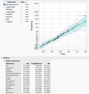 If the Distribution platform was used, LEV would have been missed. Notice that the AICc, BIC, and -2*LogLikelihood values match across the two platforms, making direct comparisons possible.