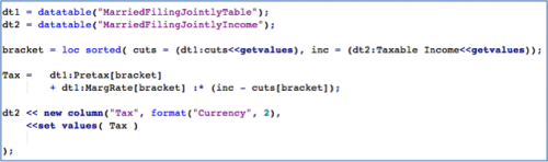 - We call Loc Sorted() using all of the values from the cuts column in the tax table as x, and the value in the current row of the Taxable Income table as y.