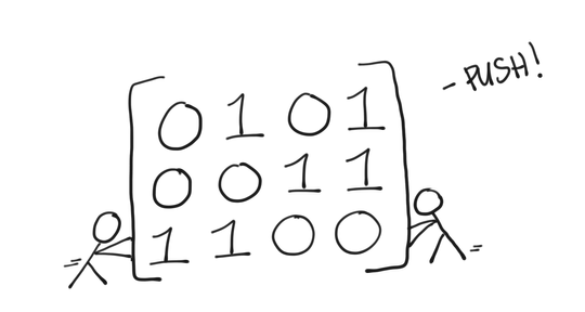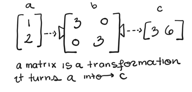 A matrix is really a transformation because when you multiply something by a matrix, it moves and stretches that thing. For example, the matrix  takes the vector  and changes it to the vector
