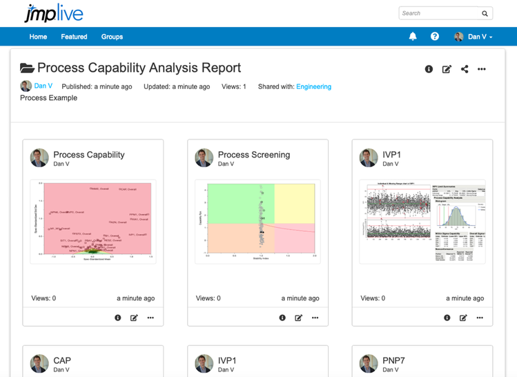 Next, organize them into a collection of reports in preparation for publishing to JMP Live; give the report a title and description of the process.