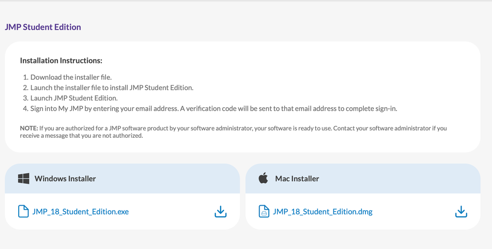 After completing the steps proceed with downloading the JMP Student Edition installer.