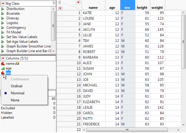 To change the modeling type to Continuous, Nominal, Ordinal, or None:
