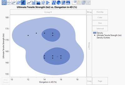 In JMP 17, Graph Builder using 'Contours' with the 'HDR' contour type gets close to what I would like but it does not have options to include all data points inside the shape and the shape extends beyond the points. Also, it has multiple contour levels which cannot be turned to one level.