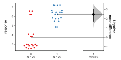 I would add box plots and a half violin plot on the dot plot to the Gardener-Altman plot (as shown in the photo), in this way the information that would be obtained would be optimal.