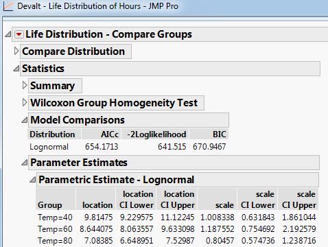 When comparing groups in Life Distribution for the Lognormal Distribution, it would be great if T50 (Median) values were shown in the comparison table, as they are more intuitive than the location values that they're derived from.