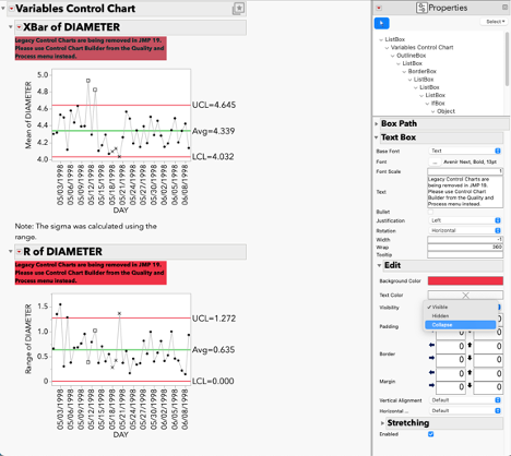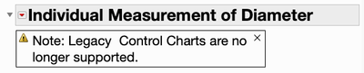 Hi @ConvergentTree1 , thank you for your request. The Legacy Control charts will be retired in JMP 19, hence the red banner in JMP 18.  However, most of the legacy functionality is available in the control charts under Quality and Process > Control Charts (including launch dialogs).  Please let us know if there is any legacy control chart functionality that is missing from the newer control charts.