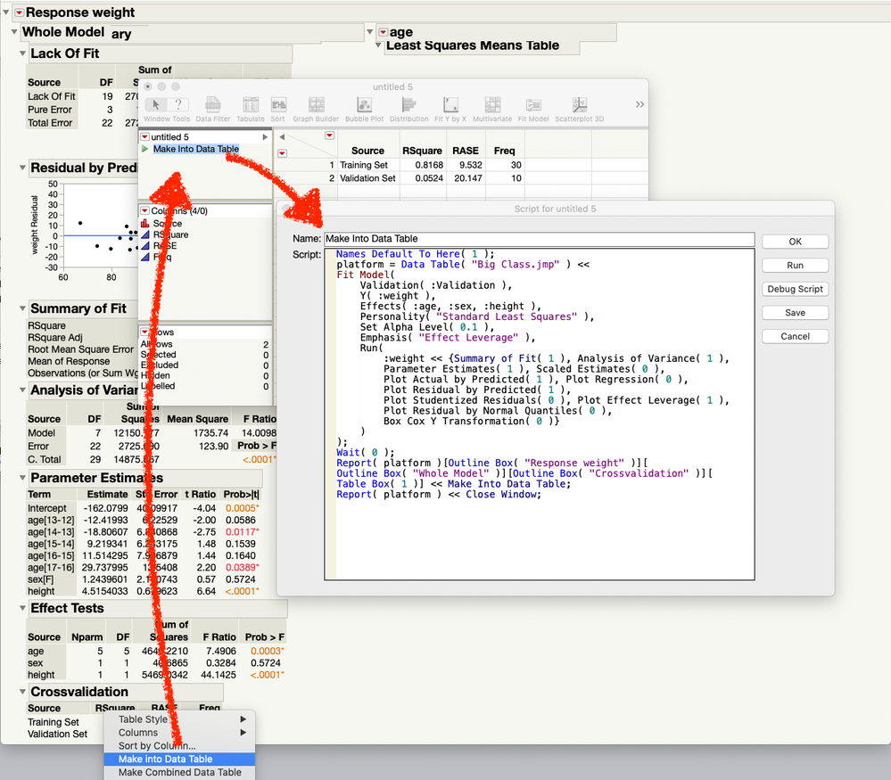 plt = fit model(<params>); rpt = plt << report; rpt(TableBox[7]) << make data table();