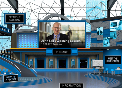 Finally, we’ve built a beautiful, virtual conference center to help put everyone in the same “place” at the same time. Easily navigate to the plenary sessions or the breakout talks. Find the Birds of a Feather and Meet the Developers sessions just as you would in person. It’s a small touch, but it helps to ground you and let you know you’re not the only person at this virtual conference.