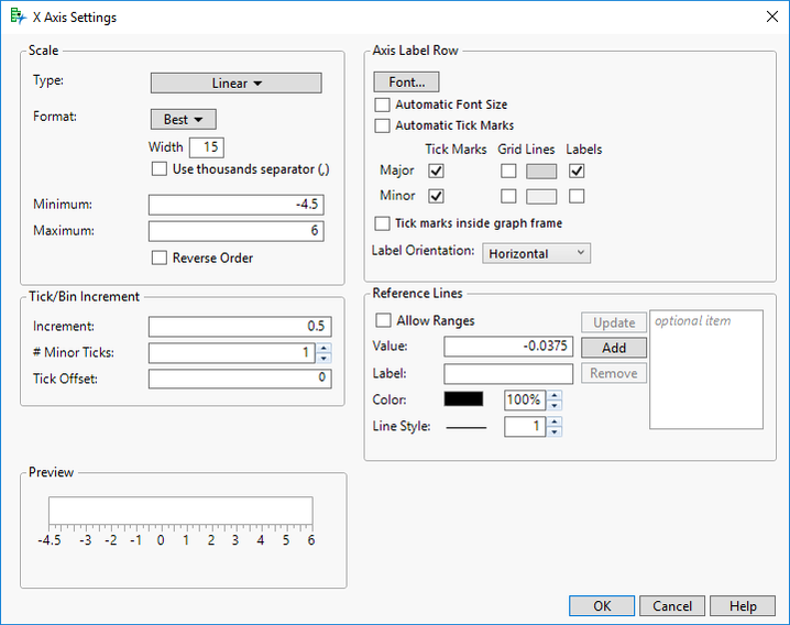 - Enter a range of -4.5 to 6 in the Minimum & Maximum fields for Scale.