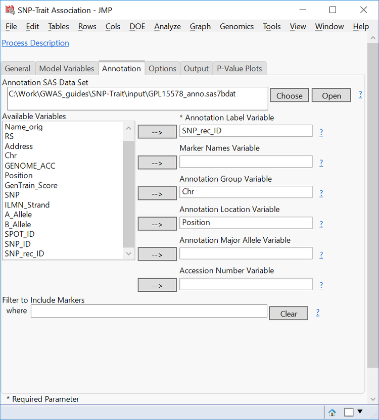 10. Set SNP_rec_ID as the Annotation Label Variable. Entries in this column will be matched to SNP IDs in the Input SAS Data Set.