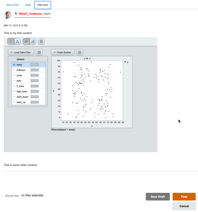 And that's it. A little cutting and pasting, and you can integrate JMP Public content into a blog post or webpage. The only legwork you may need to do is research the specific method for inserting an iFrame, but it should look similar to the one I've shown here.
