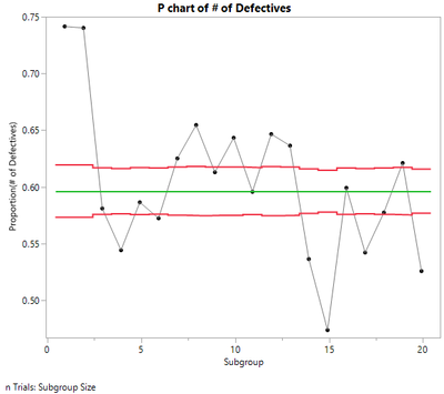 Have you ever created a P or U Control chart with large subgroup sizes? Were your limits so narrow that an unexpected number of points were flagged as beyond the control limits? P and U charts are based on assumptions such as the underlying distribution (binomial and Poisson) and the average of the distribution being the same over time. These assumptions do not always hold. Your data may show overdispersion (more variation than expected given the distribution) or underdispersion (less variation than expected given the distribution).