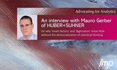Mauro Gerber is a process engineer and statistical expert working in data management, electrical testing and measurement for fiber optic cable manufacturer HUBER+SUHNER in Zurich. Prior to joining HUBER+SUHNER, Mauro spent 12 years working as an R&D process expert at German multinational glass manufacturer SCHOTT AG. In both his prior and current roles, Mauro has been an outspoken advocate of analytics enablement, piloting new training programs for engineers and procuring software to support the democratization of statistical thinking.
