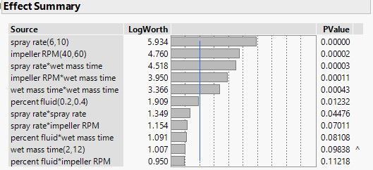 The Prediction Profiler, shown in Figure 2, is an incredible tool for product developers to fully explore the process design space without expending resources creating physical granulations and testing them.