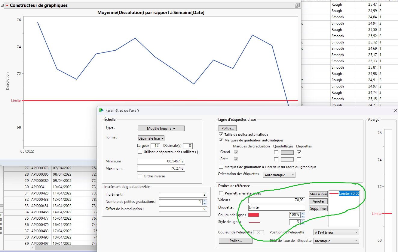 Question: Est-il possible dans le Graph Builder de créer des lignes verticales/horizontales de référence à certaines valeurs?
