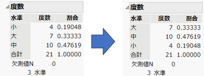 用途:JMPのレポート(表やグラフなど)に表示されるカテゴリ(水準)の順序を変更する。