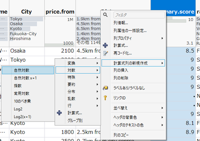 計算式の対象となる列を選択し、列名を右クリックし、[計算式の新規作成]を選択