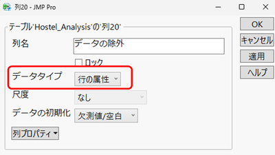 用途:ExcelなどのスプレッドシートをJMPに読み込んだ後に、列の尺度が想定した尺度になっているか確認し、必要に応じて尺度を変更する。