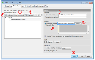 Note:  For more information on developing and deploying add-ins, search for Add-Inin the JMP Help or in the JMP Scripting Guide (under Help > Books). Explore jmp.com/addins for available add-ins.