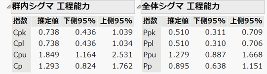 この例ではCpkは0.738、Ppk は0.510と低い値になっています。
