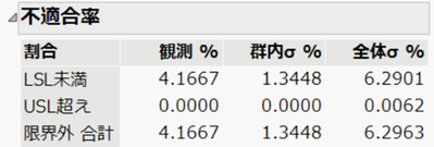 LSL未満 = (1 / 24 )* 100 = 4.1667