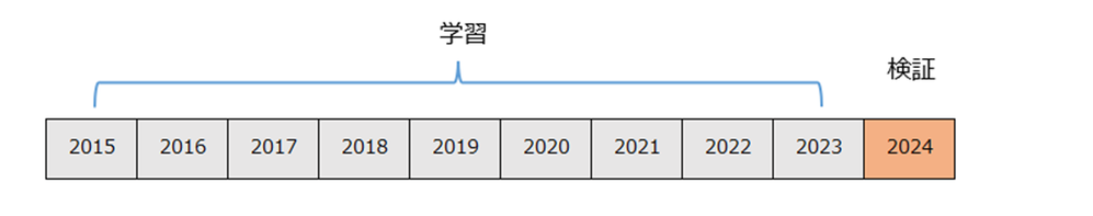 - 2024年を検証(保留)データとして、あてはまりを評価する統計量(RMSE)を使い最適なモデルを決定する。