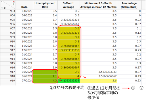 - ①から②を引き算する (Percentage(Sahm Rule))