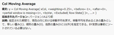 i.の3か月移動平均は、移動平均を求める Col Moving Average() 関数を使用し、次のような計算式を指定します。