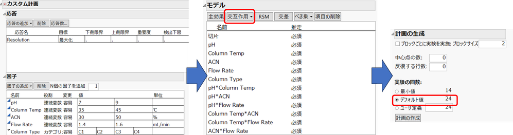 - 「計画の作成」では、実験回数のデフォルト値(24回)を選択します。