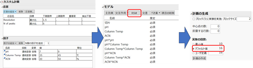 JMPでは、代表的な計画作成方法である「カスタム計画」を用い、以下の手順で分析を進めていきます。