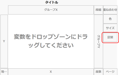 グラフビルダーでは、直接「ダンベルチャート」というグラフタイプはありません。作成するポイントとしては、「区間」ゾーンに2つの数値変数を指定することで、区間の下限値と上限値として扱えることです。