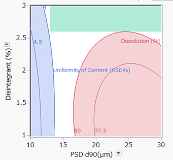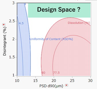 対処方法として平均(または予測の)の信頼区間を求め、その下限や上限をもとに領域を構築していくという方法などありますが、ここで「デザインスペースプロファイル」を登場させましょう。