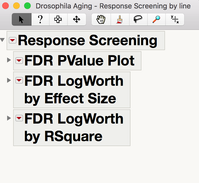 Then hit OK to run the Response Screening that will give us the “Line” comparison for each column. This provides a Response Screening window and a separate P Value table. This table will give us the P Value data for the Y Axis of our Volcano Plot.
